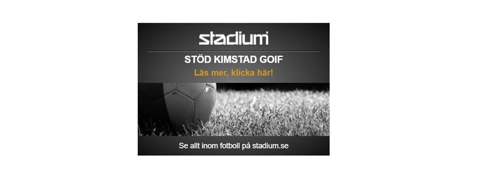 Genom att knyta Kimstad GoIF till din Stadiumbonus får fotbollen extra bonuspengar samtidigt som du behåller din bonus. Så vid varje köp, så ges 3% till Kimstad GoIF. It's a win-win, bonus till alla! Det är pengar som vi kan använda till att köpa in material så som fotbollar, matchkläder, västar, bollsäckar, konor m.m. För att stödja Kimstad GoIF behöver du vara medlem på Stadium och göra ditt val av förening under Mina Sidor på stadium.se. Medlemskapet är kostnadsfritt. För att logga in på Mina Sidor klicka här. Mvh, Sektionsledningen Fotboll