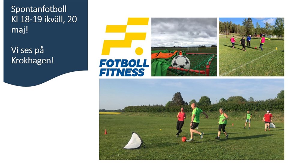 Ikväll kör vi vårt tredje tillfälle för säsongen kl 18-19 och hoppas att det är fler som vill testa på glädjen med denna motionsform. Alla är välkomna! Ju fler vi blir desto roligare! Det här är Fotboll Fitness En träningsform som passar alla oavsett ålder, fotbollserfarenhet eller fysisk form. Fokus ligger på att förbättra sammanhållningen och hälsan på ett roligt och socialt sätt. Riksidrottsförbundet (RF) betonar att vi bedriver idrott i föreningar för att ha roligt, må bra och utvecklas under hela livet. Hur? Ett Fotboll Fitness pass har ingen bestämd tid, men till en början så sätter vi 60 minuter som utgångspunkt. Efter uppvärmning delar vi upp gruppen i två lag (alternativt flera lag och flera planer om vi är många). Lämpligt antal spelare är 3–7 personer/lag, om vi är ojämnt antal kan ena laget vara en mer. Deltagare Att spela fotboll tillsammans är både glädjefyllt och effektivt! På fotbollsplanen tränar vi både kondition och muskelmassa samtidigt som det ökar förbränningen och stärker skelettet. Ta chansen att komma i form på ett roligt och enkelt sätt med hjälp av Fotboll Fitness kanske att det även sker under tiden era barn tränar i sina lag eller att bara få komma iväg själv för att träna. Regler • Uppvärmning • Smålagspel (3v3 – 7v7) • Inga tacklingar • Anpassar tillfällena efter deltagarnas nivå, ålder och önskemål Vid eventuella frågor hör av dig till Matilda Hahne Bergdahl tel 0706003567 alt via mail: kimstad.goif.fotboll@gmail.com Vi välkomnar alla till fotbollsfamiljen & till glädje & gemenskapen i Kimstad GoIF! Mvh Fotbollssektionen Kimstad GoIF