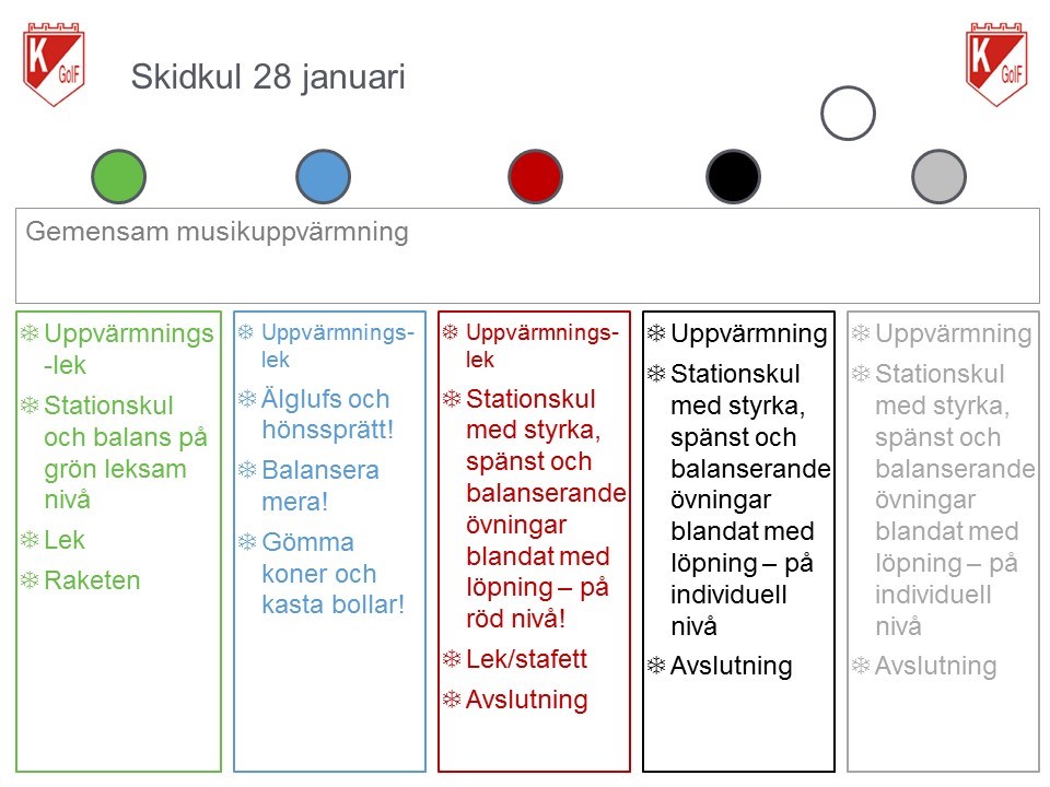 Denna lördag övas allt från topp till tå. De flesta kör nämligen runt i en stationsbana där stavgång, styrka, spänst, balans och kroppskontroll varvas med löpning. Välkommen till ett roligt Skidkul i Krokhagen! PS: Anmäl er gärna till skidtävlingarna nästa lördag och söndag i Vreta. Det är en chans att åka skidor på snö och att ha nummerlapp på bröstet betyder inte att det är fullt allvar utan det ska alltid vara Skidkul! Sista anmälningsdag är under lördagen så säg till om ni behöver hjälp med anmälan.