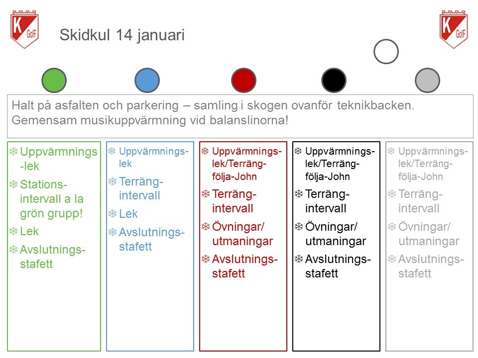 Det finns visserligen små plättar snö som ev skulle kunna räcka till grön och blå, men vi kör skor på fötterna för alla i morgon. Var försiktig på parkeringen och framförallt på asfalten, det är isigt och halt. Vi samlas i skogen vid balanslinorna ovanför teknikbacken för gemensam uppvärmning. Efter lite mer uppvärmning/lek blir det sedan kurviga terrängintervaller, lite mer lek och övningar och sen en avslutningsstafett. Välkomna till Skidkul! (OBS, om du är sugen på att åka skidor i tävling i Sya på fredag kväll nästa vecka så får du inte glömma att anmäla dig senast söndag kväll, det går bra att meddela Laila i serveringen under Skidkul imorgon).